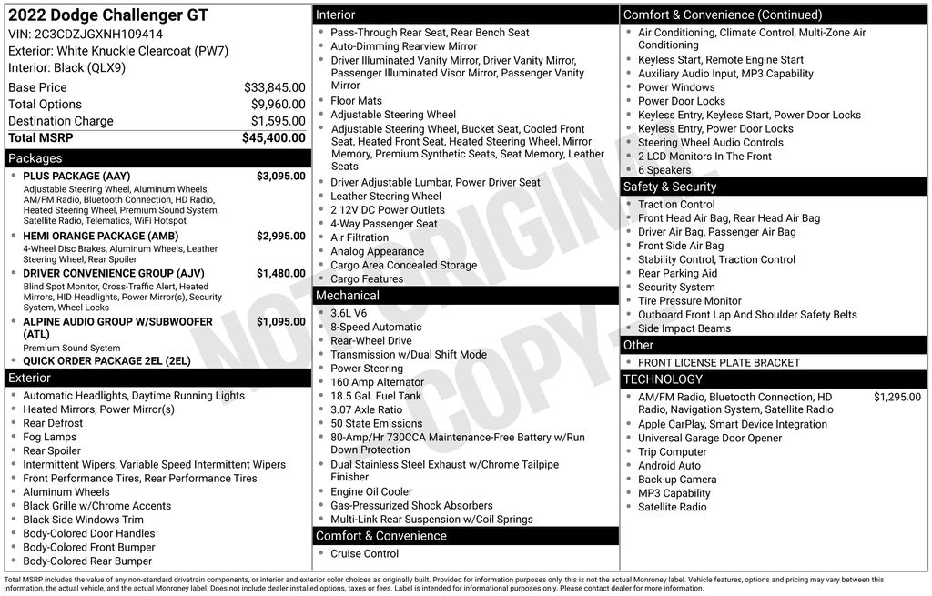 Price excludes Dealer Processing Charge (not required by law): $799