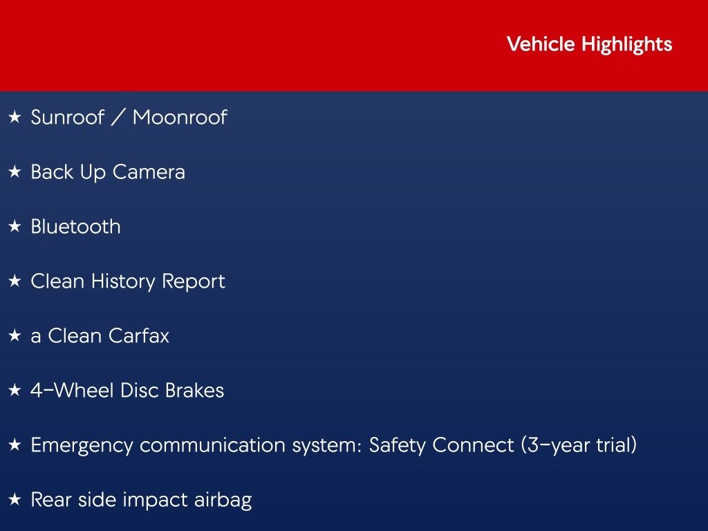 - Emergency SOS Capable Safety Connect (3-year trial) vehicle integrated emergency SOS system