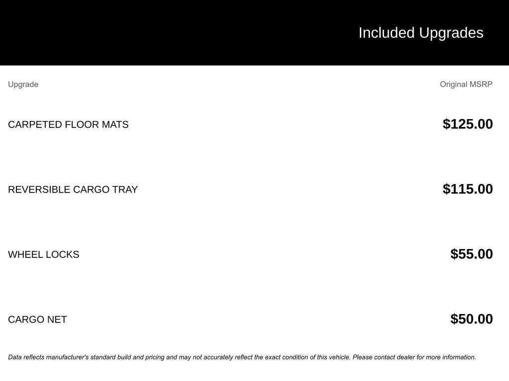• Interior Trim -inc: Simulated Carbon Fiber Instrument Panel Insert, Simulated Carbon Fiber Door Panel Insert and Metal-Look Interior Accents