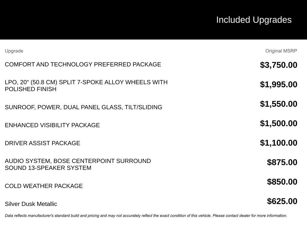 - Wheels: 20" Split 7-Spoke Polished Alloy (LPO)