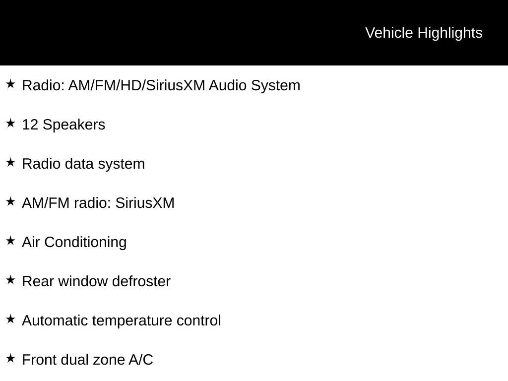 - Radio w/Seek-Scan, Clock, Aux Audio Input Jack, Steering Wheel Controls, Voice Activation, Radio Data System, External Memory Control and Internal Memory