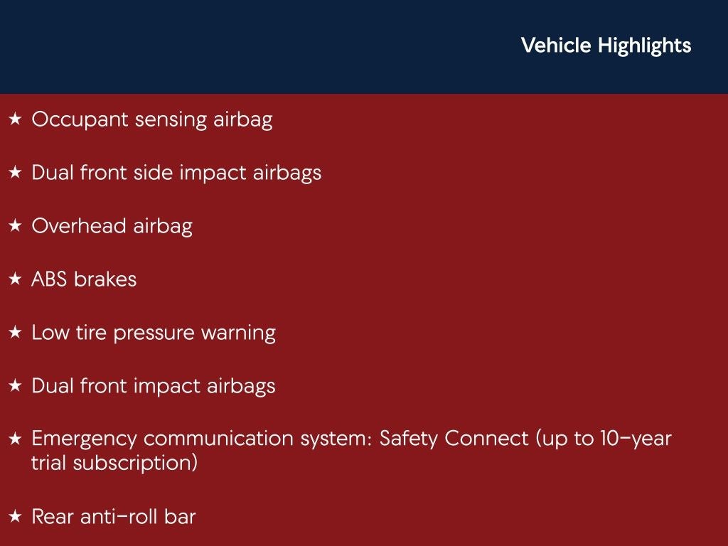 - Emergency SOS Capable Safety Connect (up to 10-year trial subscription) vehicle integrated emergency SOS system