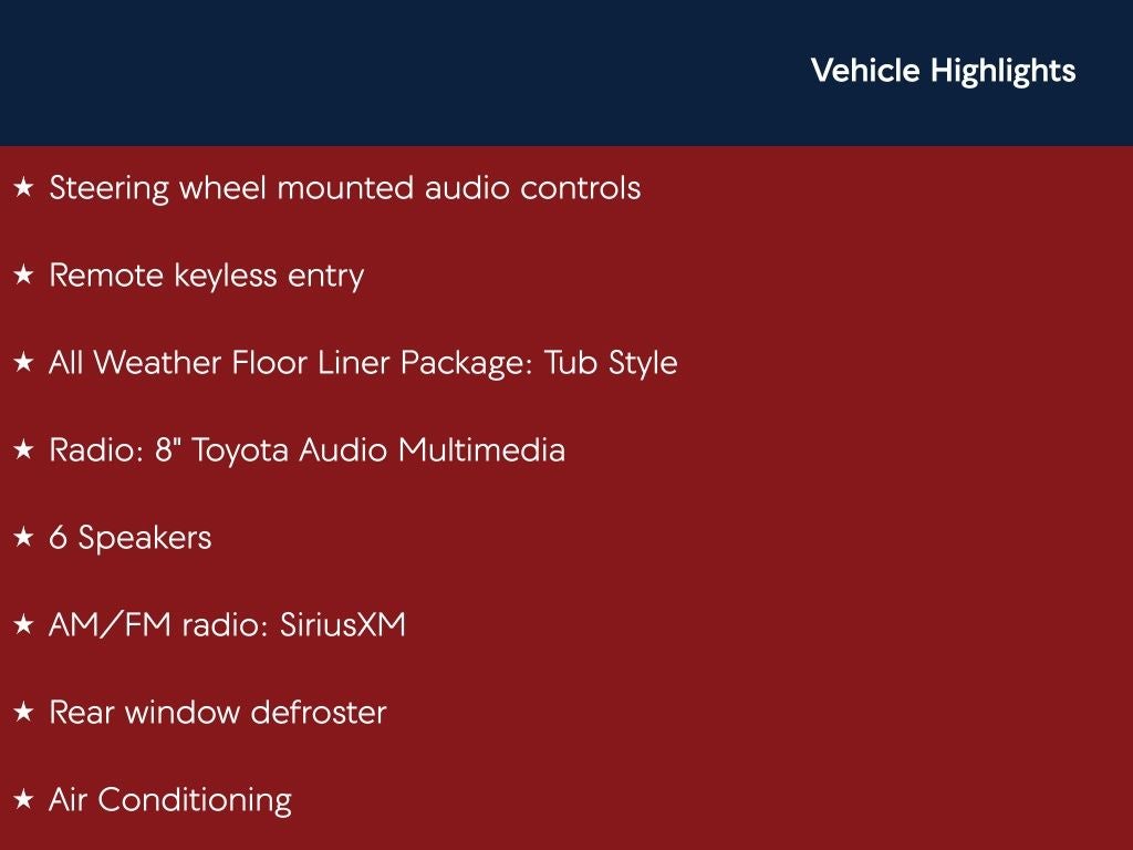 - Radio: 8" Toyota Audio Multimedia